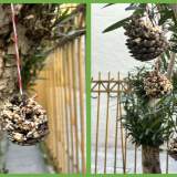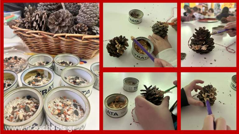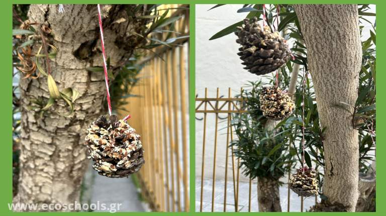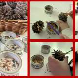 Για να τα βοηθήσουμε να επιβιώσουν τον χειμώνα, δημιουργήσαμε ταΐστρες πουλιών χρησιμοποιώντας κουκουνάρια, φυστικοβούτυρο και σπόρους.