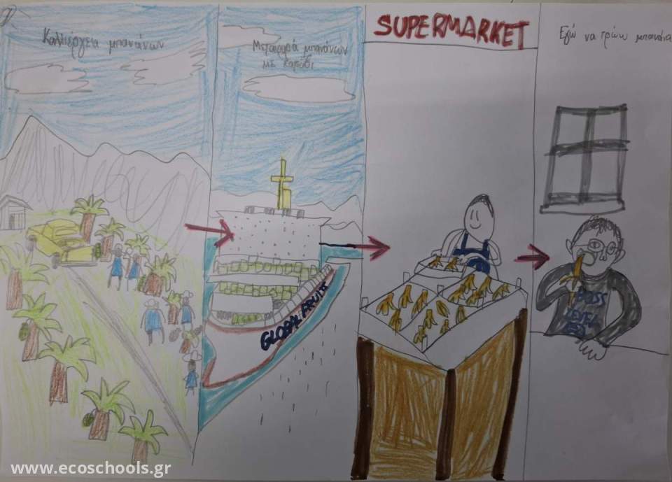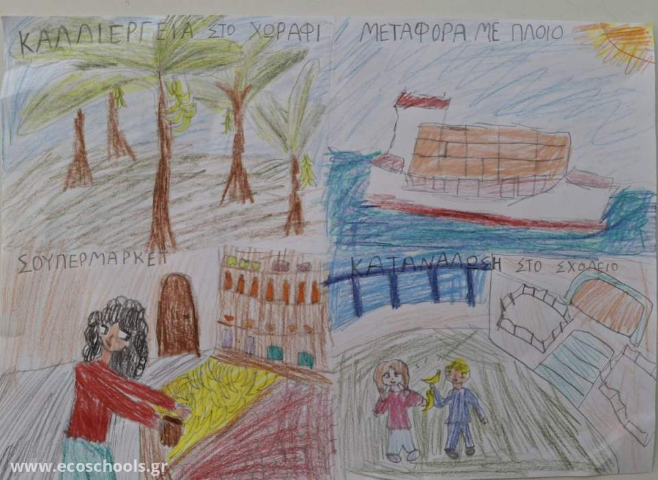 Συγκρίνοντας την μπανάνα Ισημερινού με μια μπανάνα Κρήτης ή ένα ελληνικό μήλο, τα παιδιά κατανοούν την αξία της μείωσης των τροφοχιλιομέτρων.