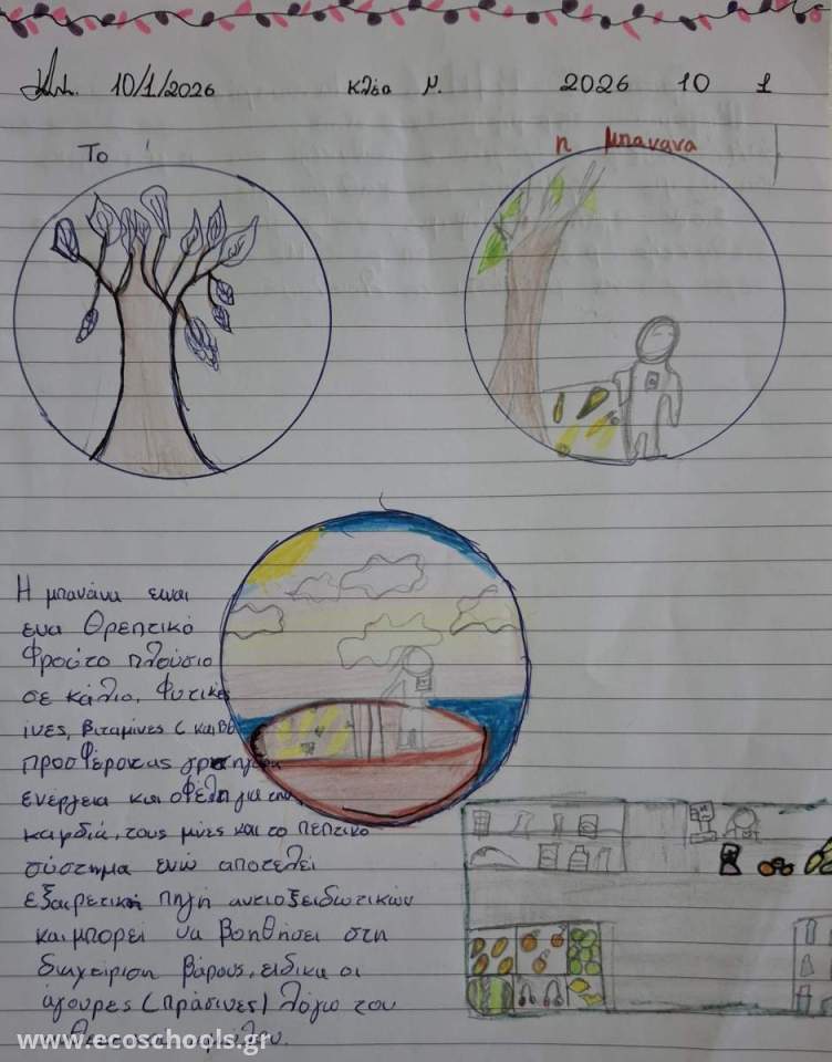 Το ταξίδι της μπανάνας από τον Ισημερινό μέχρι την Ελλάδα αποτελεί ένα κλασικό παράδειγμα για να κατανοήσουν οι μαθητές της ΣΤ' Τάξης την έννοια των τροφοχιλιομέτρων και του οικολογικού αποτυπώματος.