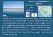 Στο πλαίσιο του ευρωπαϊκού προγράμματος eTwinning οι μαθητές των Α΄& Β΄ τάξεων του σχολείου μας παρουσίασαν την τεχνητή λίμνη Μαραθώνα και το φράγμα. Επίσης, αναφέραμε και λίγες πληροφορίες για την ιστορική μας νίκη εναντίον των Περσών στην περιοχή του Μαραθώνα και τον αυθεντικό μαραθώνιο δρόμο που διεξάγεται από τον τύμβο μέχρι το Καλλιμάρμαρο Στάδιο .