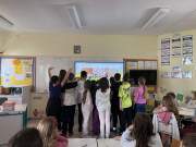 Οι μαθητές/ τριες στο πλαίσιο της προσπάθειας να υιοθετήσουν μια διαφορετική συμπεριφορά απέναντι στη σωστή διαχείριση των απορριμμάτων κλήθηκαν να κατασκευάσουν μάσκες από χαρτιά που δε χρειάζονταν και καπάκια από πλαστικά μπουκάλια. Οι μαθητές/ τριες με μεγάλο ενθουσιασμό, δούλεψαν και κατασκεύασαν φανταστικές μάσκες για να υποδυθούν ρόλους σε ένα θεατρικό παιχνίδι που έγινε μέσα στην τάξη.