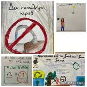 Οι μαθητές/ τριες της Ε' Τάξης στα πλαίσια του προγράμματος "Οικολογικά Σχολεία" ασχολήθηκαν με τη σωστή διαχείριση των απορριμμάτων τους. Ένα μέρος της συζήτησης αφορούσε φυσικά ένα νέο φαινόμενο που παρατηρείται σχεδόν σε όλους τους ανθρώπους και αφορά την υπερκατανάλωση. Οι μαθητές αφού συζήτησαν και βρήκαν πότε οι ίδιοι και οι οικογένειές τους έχουν γίνει σπάταλοι και παρουσίασαν στην τάξη πώς θα μπορούσαν να περιορίσουν τη σπατάλη πρώτων υλών και ενέργειας στο σχολείο και στο σπίτι τους.