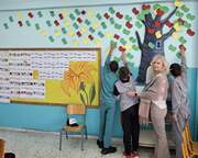Τα παιδιά έκοψαν και έβαψαν χαρτιά ανακύκλωσης και τα κόλλησαν στον τοίχο της τάξης τους δημιουργώντας μία πολύ όμορφη εικόνα.