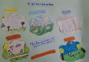 Στη συνέχεια τα παιδιά, αφού χωρίστηκαν σε ομάδες, δημιούργησαν μια αφίσα με μηνύματα που αφορούν την πρόληψη πυρκαγιάς, την καθαριότητα, τη συμπεριφορά και τον σεβασμό στη φύση.