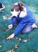 # Τα αγόρια εφοδιασμένα με ντέμπλες ράβδισαν με τις οδηγίες ενός επιστάτη- αρκετά ελαιόδεντρα σε κτήμα του ελαιοτριβείου Παπαδέλλη-Πλωμαρίτη στη Θερμή. Στη συνέχεια τα κορίτσια μάζεψαν τις ελιές, που είχαν πέσει πάνω στα δίχτυα με τα οποία είχε στρωθεί το χωράφι.