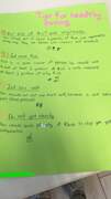 Οι μαθητές της Δ τάξης, αφού μίλησαν για τα ωφέλη της διατροφής και για τις ανθυγιεινές τροφές, ζωγράφισαν την πυραμίδα της διατροφής. Επιπλέον, μίλησαν για τα συστατικά των προϊόντων και όσα θα πρεπει να αποφεύγουμε(π.χ. Συντηρητικά). Τα παιδιά έφεραν ετικετες από προϊόντα κι έκαναν ένα κολλάζ με αυτές. Στη συνέχεια, περάσαμε στο πιάτο της διατροφής που είναι το πλέον επικρατέστερο για την υγιεινή διατροφή.