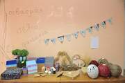 Οι υπόλοιποι μαθητές ζωγράφισαν ένα ξύλο τύπου κόντρα πλακέ και σε αυτό κρεμάσαμε τις γλάστες της πρώτης ομάδας μαθητών.