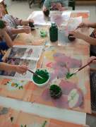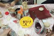 Αρχίσαμε να δημιουργούμε με τα υλικά αυτά μικρές λιχουδιές, τις οποίες θα κρεμούσαμε στα δεντράκια της αυλής του Νηπιαγωγείου. Λιχουδιές για τα μικρά ζωάκια και τα πουλιά, που καθημερινά επισκέπονται την αυλή μας.